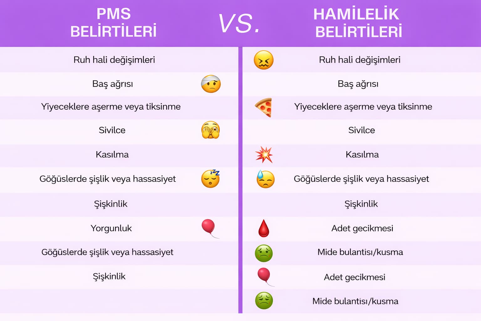 | Belirti | Adet Öncesi (PMS) | Erken Hamilelik |